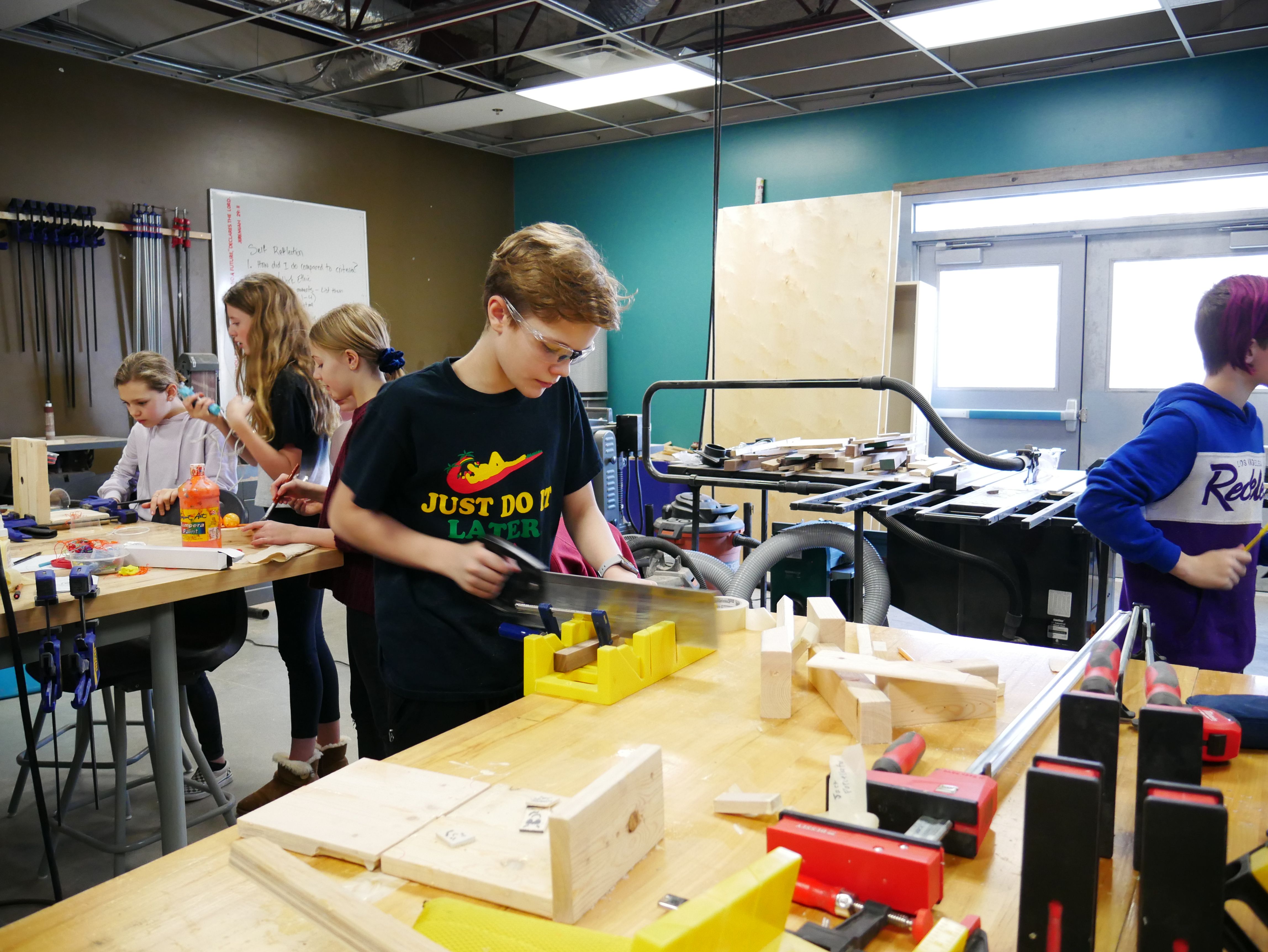Grade 6/7 Explorations is an opportunity for students to mix together in cross-graded groups to explore various Applied Design, Skills, and Technologies (ADST) concepts and opportunities. Students are placed in class-sized groups that participate twice a week in modules that explore design elements, new skills, and technology, culminating in a final project.